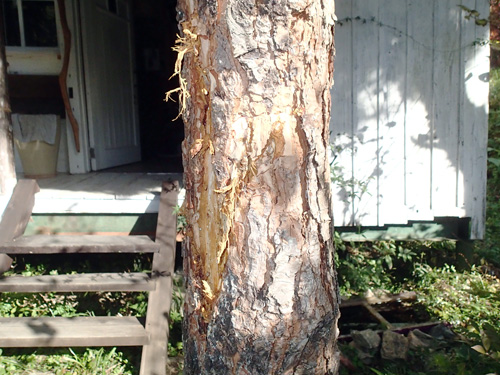 ここは、和歌山のお山にポツンと礒やしきです バームクーヘンでお腹が膨れてうきうき気分でお庭を散策しておりましたら 礒野さ~ん、離れの前の松の木が、何者かにえぐられてますよ~ もしかして、クマさんかなぁ~ それはね、 ニホンジカさんか、ニホンカモシカさんだと思います 最近よく訪れてくれるご近所さまで、柿をかじりにきたりして、鳴き声とかもよく聞くのですよ