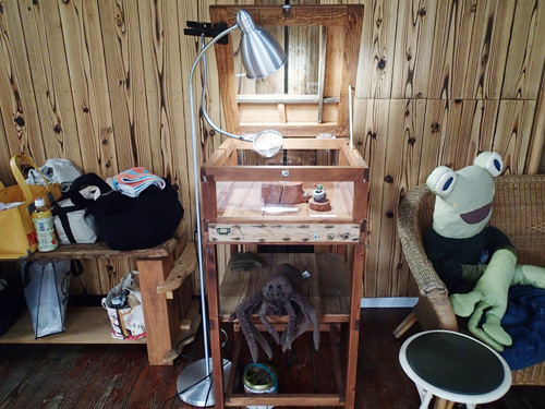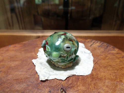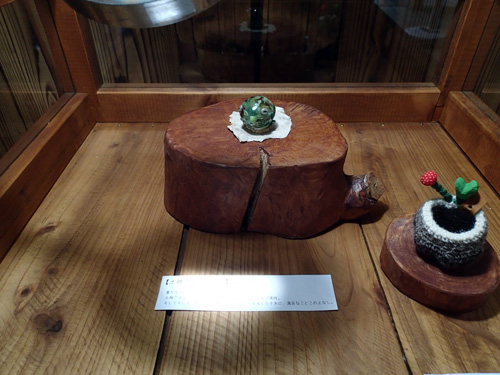 ども、町長です 礒やしき離れの一階、中央の壁側に設定された展示代の中には、今月のグラス2Hに出品される作品が、お披露目されているのです 先々々月をかわきりに続いておりました、町長コレクション放出も終了いたしまして、今月は礒野さんからの出品となっています ・・・12月お披露目の新作の構想がまとまったようです。