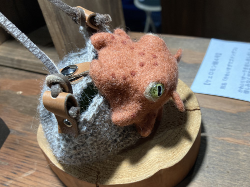 とんでもないワクワク企画が始動したようです 礒野昭子さん率いる「いそのんズ」の初作となる【ケェロモン蛸】です 素材は、ガラスとウールとなります 【ケェロモン蛸1号】