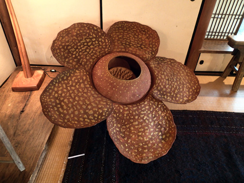 河野甲さんの個展では、大きなヒアリが机の上に乗ってたり 畳のお部屋にラフレシアが咲いてたり