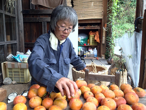 礒野さんは、日曜日の「いそのん劇場」の準備で大忙しです 会場の礒やしき離れからは、電動ドリルやトンカチなどの 賑やかな音が響いてまいります。 その、準備の合間には、・・・ お庭の手入れや、お野菜の畑仕事や、柿の収穫とか・・・ とにかく、じっとしてるところを見た事がありません お邪魔にならないように・・・ 今年は、柿が豊作です 柿くいね~ いただきま~す