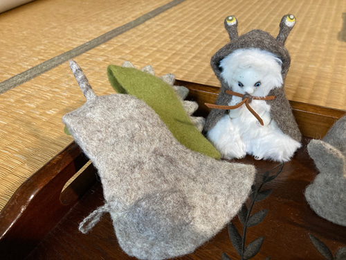 えっ、なに~これ~...と思わず言ってしまいました 今度は、フエルトです しかも、発想が、とても面白い 帽子かな?、バッグかな? デザインの絵までついて、服飾の域を超えております コートかな?...いやいやコスプレ?...着ぐるみ?...う~ん!コスチュームでしょう