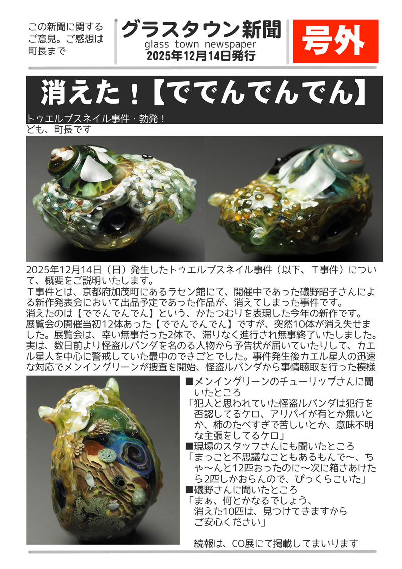 明日14日は、礒野さんの新作【ででんでんでん】発表の日です