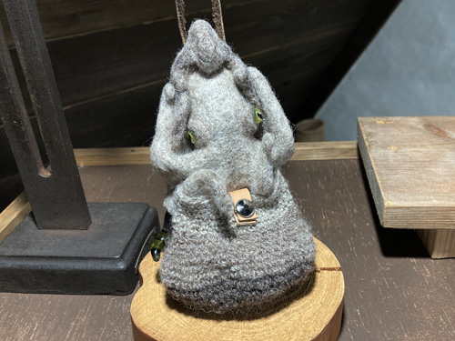 礒野昭子さんと礒野紀子さんのセッション「いそのんズ」の初作となる【ケェロモン蛸】6匹のなかの2号です 素材は、ガラスとウールとなります 【ケェロモン蛸2号】