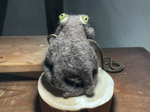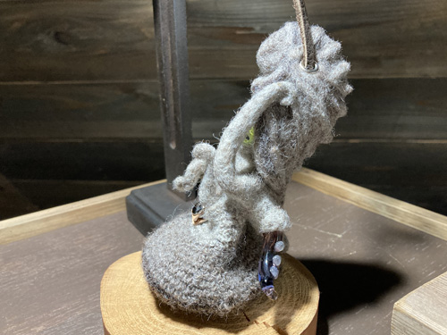 礒野昭子さんと礒野紀子さんのセッション「いそのんズ」の初作となる【ケェロモン蛸】6匹のなかの3号です 素材は、ガラスとウールとなります 【ケェロモン蛸3号】