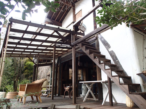 離れのウッドデッキの北側にガラス作品をじっくり見ることのできる場所をつくりた~い
