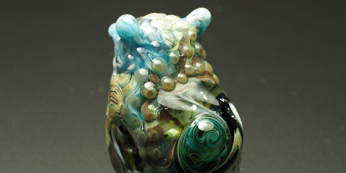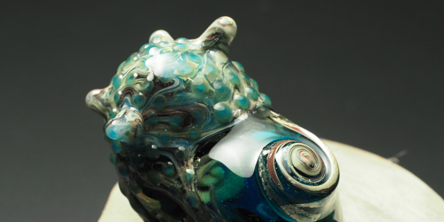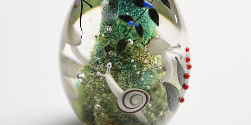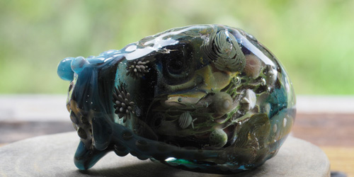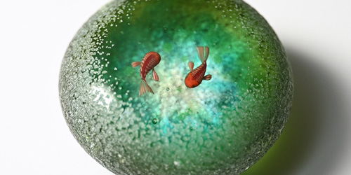 魚石は、中に魚が棲んでいるという不思議な石がモチーフのガラス作品です