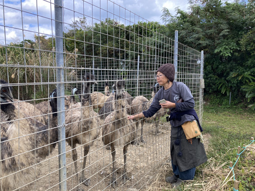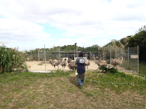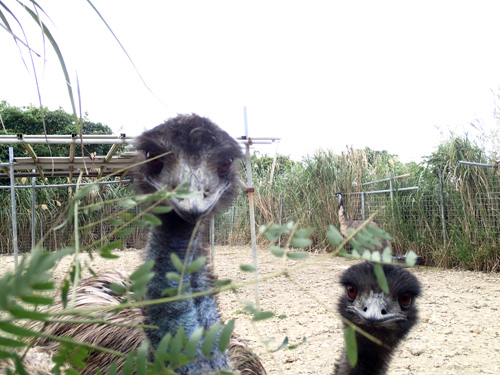昼間の気温は20度超え、和歌山のお山と比べる10度以上も暖かいのです お日さまの出た昼間ならばTシャツで過ごせちゃいます 先ずは、エミューさん達に逢いにやってきました み~んな、いたいた、いましたよ~ お久しぶり~ 柵の隙間から、ワシワシワシ おやつを、どうぞ これは、ギンネムかな