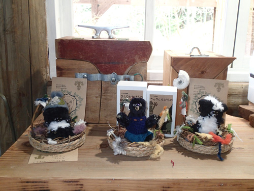 一階南側の窓際は、みせびらかしコーナーが設置されています 左側には、先月初出された、内田さんの作品がご覧いただけます 右側は...ケロ友さんがつくられた作品です もしかして「ケロメール」