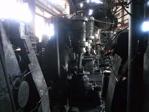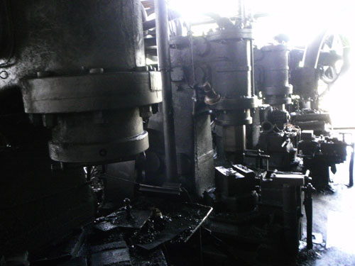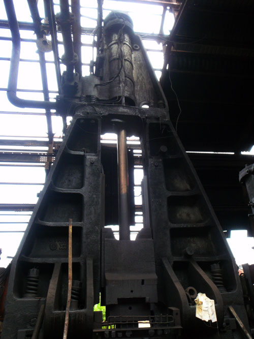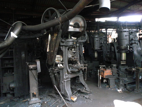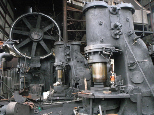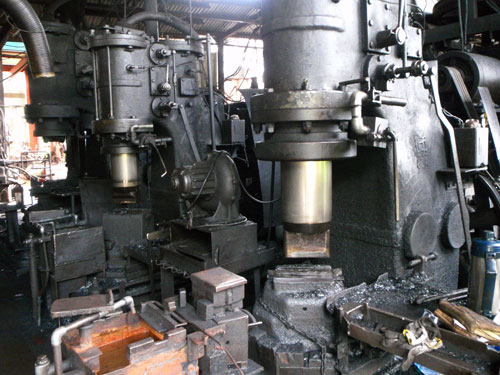 ども、町長です 外川産業さんのお話です 特大なものから、用途に応じた大きさの複数台のエアーハンマーが、ずらりと整列しています なんともいえない、独特な重厚感と美しさがあります