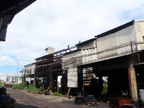 外川産業さんのお話です 時間を15年前に戻してみましょう 当時、姫路駅の東側に線路が何十本も枝分かれしたように敷き詰められた車輌基地がありました 外川産業の工場はこの線路と線路に挟まれた場所にありました あっ、外川さんこんにちは
