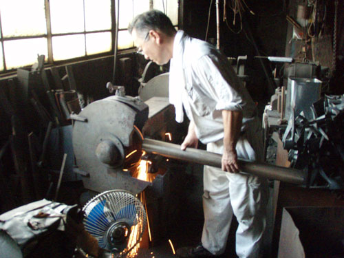 かつて、兵庫県姫路市の鍛冶屋さんで、ツルハシ造り日本一といわれた外川産業の外川さんです 15年前に姫路市の駅周辺再開発で工場の存続ができなくなり、鍛冶の貴重な技術と工作機械は姫路市から無くなってしまったのでした